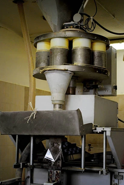 O processo de empacotamento de farinha envolve etapas como dosagem precisa, selagem e corte automático da embalagem.